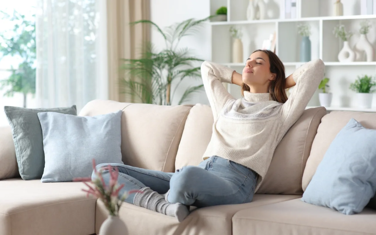 Η ίδια προτείνει λάμπες με ζεστό φως και ένα κερί για πιο φιλόξενη ατμόσφαιρα. «Αυτή είναι η απαλότητα που αναζητάμε για να δημιουργήσουμε ζεστασιά», λέει. Και τότε, η αίσθηση ηρεμίας έρχεται σχεδόν φυσικά.