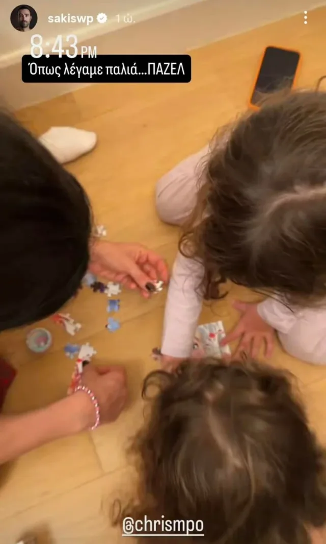 Ο γνωστός παρουσιαστής φωτογράφισε τη σύζυγό του και τις δίδυμες κόρες τους καθισμένες στο πάτωμα ,φτιάχνοντας ένα παζλ.