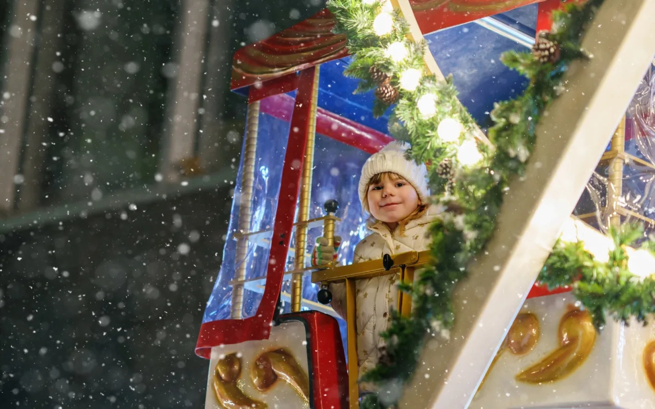 Φωτεινά λαμπάκια, αρωματικά ζεστά ροφήματα και παιδικά γέλια που αντηχούν στην ατμόσφαιρα.