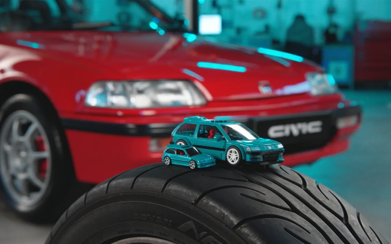 Ως ένα πραγματικό σύμβολο της τάσης βελτίωσης των αυτοκινήτων που επικρατούσε την δεκαετία των 90s, το συναρμολογούμενο ’90 Honda Civic EF αναπαρίσταται σε λεπτομερή κλίμακα 1:32. Το μοντέλο περιλαμβάνει ανοιγόμενες πόρτες, αυθεντικά παράθυρά και φώτα, καθώς και επιπλέον αυτοκόλλητα και καλύμματα ζαντών για εξατομίκευση. Το σετ αποτελείται από 248 κομμάτια, μια αυθεντική μεταλλική μινιατούρα του οχήματος σε κλίμακα 1:64 και μια μεταλλική πλακέτα Hot Wheels η οποία συμπεριλαμβάνεται για πρώτη φορά στα σετ συναρμολόγησης Mattel Brick Shop.