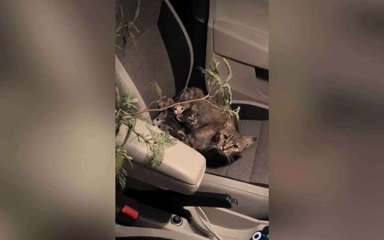 Μία μαμά γατούλα με τα γατάκια της είχαν βρει καταφύγιο στο αυτοκίνητό της.