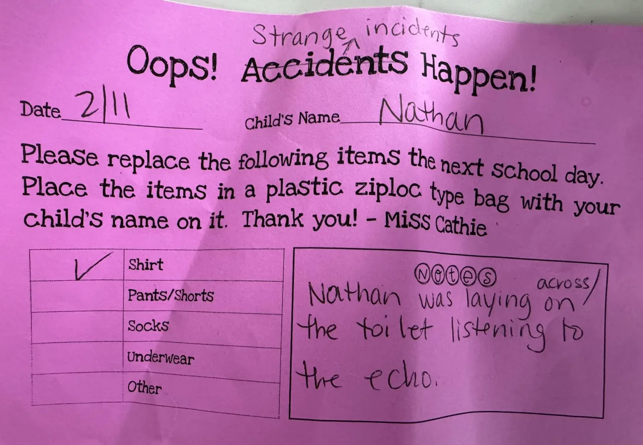 «Βάζοντας σήμερα τον Nathan στο αυτοκίνητο μετά το σχολείο, ήταν φανερό ότι είχε αλλάξει μπλούζα και φορούσε διαφορετική από εκείνη που είχε κατά τη διάρκεια των σχολικών ωρών. Όταν τον ρώτησα γι’ αυτό, ο Nathan εξήγησε ότι η Miss Cathie τού είπε να αλλάξει μπλούζα. Τότε βρήκα αυτό μέσα στο σακίδιό του,» έγραψε η μητέρα.