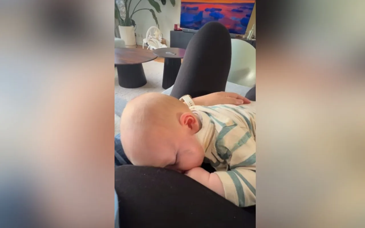 Σε ένα reel στο Instagram, η Leanne Smits (@nacho.thekittycat) κατέγραψε ένα σύντομο παράθυρο ησυχίας, αφού ο 11 εβδομάδων γιος της, ο Luuk, είχε μόλις αποκοιμηθεί πάνω της μετά το τάισμα.