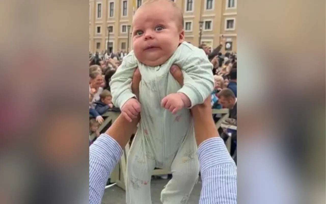 Στα πλάνα αποτυπώθηκαν δύο μωρά ξαδερφάκια, τα οποία ευλογήθηκαν από τον Πάπα Λέοντα ΙΔ΄ στην Πλατεία του Αγίου Πέτρου.